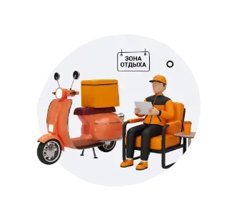 Курьер келесі тапсырысты қойманың демалыс аймағында күтеді
